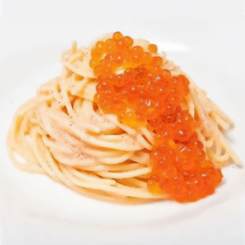 日本の伝統的な食材である明太子と、高級食材のイクラを贅沢に使用した、濃厚でクリーミーな味わいが絶妙な、まさに贅沢な一品です。口に入れた瞬間、明太子といくらの塩味が広がり、バターの芳醇な風味が後からじんわりとやってきます。アルデンテのスパゲティと絡み合うクリーミーなソースは、まさに絶品と言えるでしょう。トッピングされたいくらは口の中でプチプチと弾ける食感と濃厚な味わいが楽しめます。この見た目も美しいおすすめの一品を是非お試し下さい。