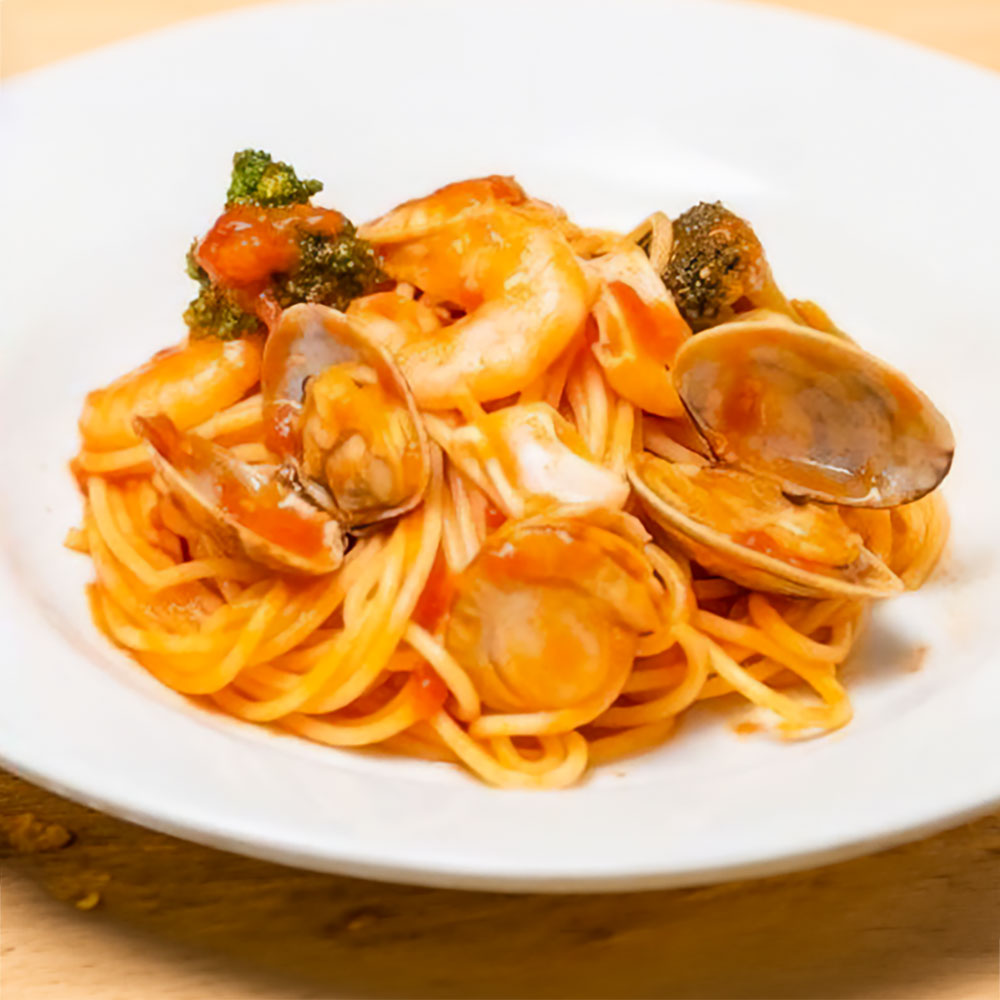 イタリア語で「漁師」という意味があるペスカトーレ。トマトソースに魚介類を組み合わせたパスタ料理です。完熟トマトの甘みと酸味がバランス良く調和した、濃厚で風味豊かな特製のトマトソースと、季節によって異なる新鮮な海の幸がたっぷりと入っています。絶妙に絡み合ったそれぞれの海の幸が、トマトソースとスパゲティによく絡み、口の中でほどよく旨味が広がります。美味しくて贅沢な一品となっていますので、ぜひ、この美味しさを味わってみてください。